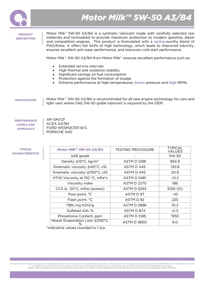 MOTOR MILK™ 5W50 5 Liter